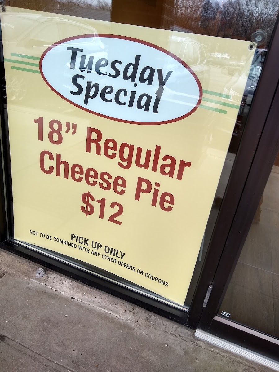 Sicilian style pie with fresh mozzarella, marinara sauce, sautéed onions, topped with toasted bread crumbs, basil and parmigiana cheese